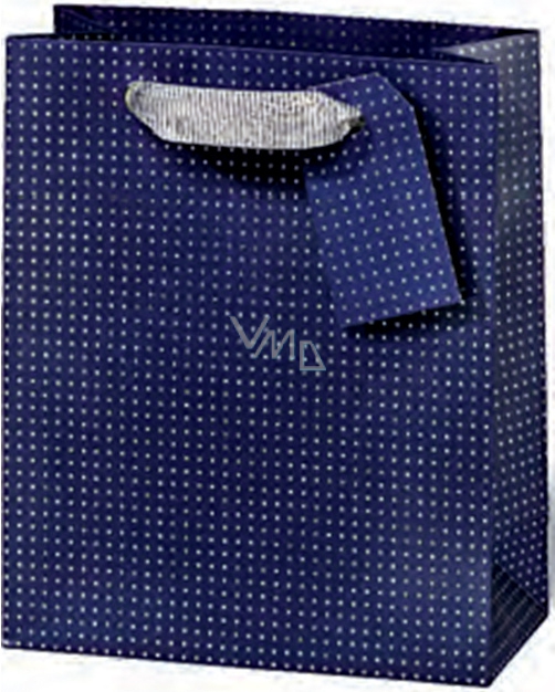 BSB Luxusní dárková papírová taška 36 x 26 x 14 cm Tmavě modrá s puntíky LDT 374-A4