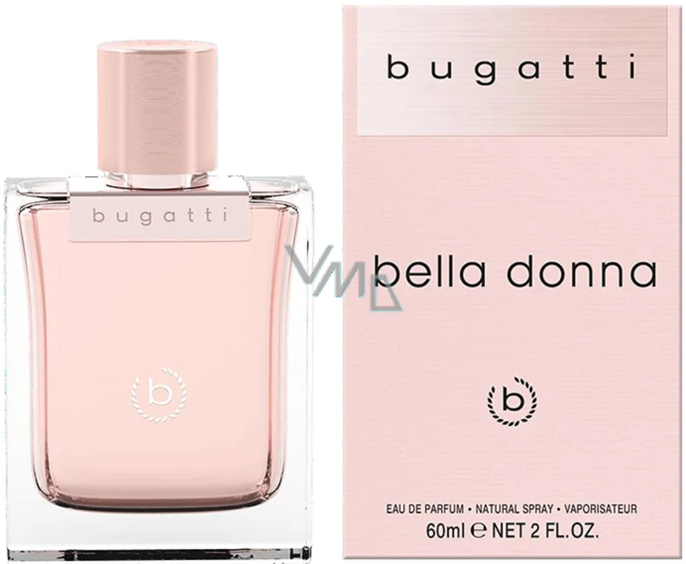 Szklany wnętrze flakonu wyróżniają kobiece elementy w postaci typowych kobiecych krzywizn z wyraźnym pasem. Tym samym zapach wyraźnie wyróżnia się od wszystkich innych kanciastych flakonów na półkach sklepów. Zapach Bella Donna ma różowe zabarwienie, a pod szyjką zdobi go metaliczny klip w różowo-złotym wydaniu z wytłoczonym napisem Bugatti. Całość jest owinięta w ten sam kolor co klip, a w górnej części wieńczy go symbol Bugatti.