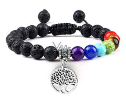 Čakrový náramek Strom života + Lávový kámen, ručně vyráběný elastický, kulička 8 mm / 16 - 17 cm,35.07 PLN