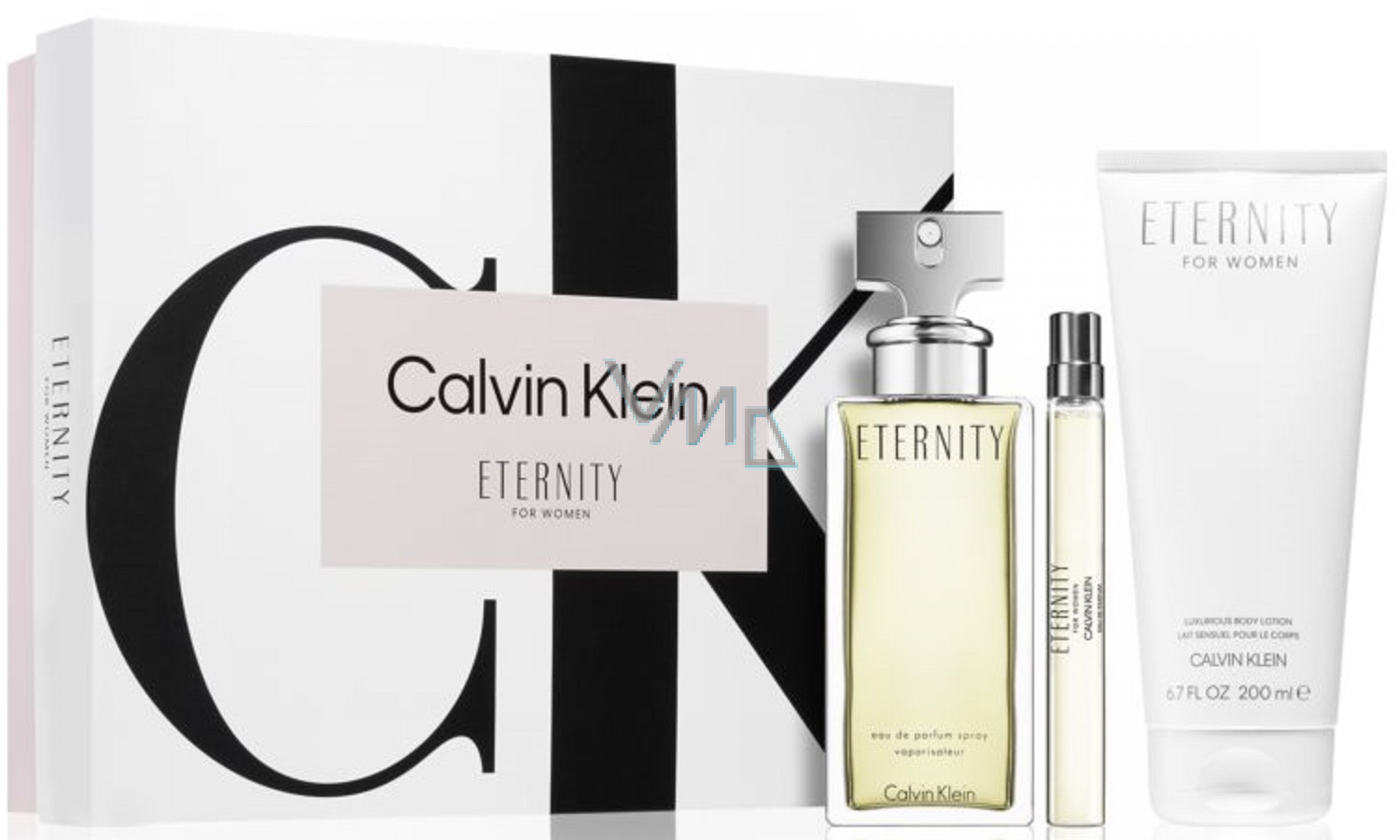 Calvin Klein Eternity parfémovaná voda pro ženy 100 ml + parfémovaná voda pro ženy 10 ml + tělové mléko 200 ml, dárková sada pro ženy