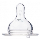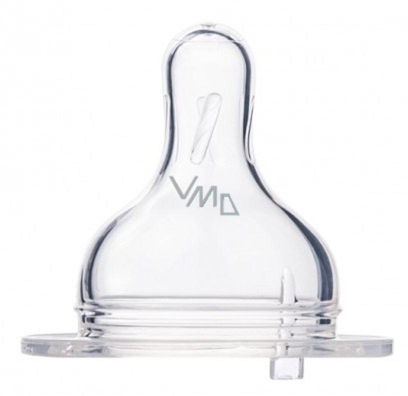 Protikolikový, silikonový dudlík na láhve se širokým hrdlem se velmi dobře odvzdušňuje a tím minimalizuje vznik dětské koliky. Podporuje správný vývoj skusu, řeči a dásní dítěte. Svým tvarem připomíná matčinu bradavku, umožňuje kombinovat krmení z láhve s kojením. Je vyroben z kvalitního silikonu, který se zcela bez chuti a bez zápachu a nemění chuť podávaného pokrmu. Dodává se v šesti velikostech průtoku. Při výběru velikosti dudlíku berte v úvahu také věk dítěte, jeho chuť k jídlu a druh podávaného pokrmu. V balení 1 kus.