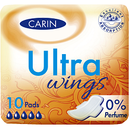 Wkładki Carin Ultra Wings są cienkimi indywidualnie pakowanymi perfumowanymi wkładkami z skrzydełkami o ulubionym zapachu aloesu. Mają świeżą i bezpieczną bawełnianą powierzchnię.