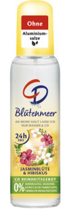 CD Deo je květinový dodorant s přírodními květinovými výtažky z jasmínu a ibišku. Poskytují květinový pocit svěžesti a zaručuje spolehlivou 24 hodinovou ochranu proti pocení.