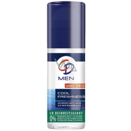 CD Men sprej deodorant se svěží vůní. Eliminuje pach potu a navozuje pocit svěžesti po celý den. 24 hodinová ochrana proti nepříjemnému tělesnému zápachu se svěží vůní pro dlouhotrvající pocit svěžesti.