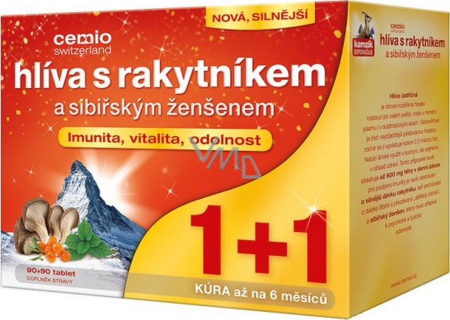 Cemio Hlíva s rakytníkem a sibiřským ženšenem pro odolnost organismu 90 + 90 tablet, dárkové balení