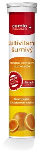 Cemio Multivitamin šumivý dodává tělu komplex 10 nejdůležitějších vitaminů. Přípravek má výbornou příchuť červeného pomeranče, neobsahuje chemická barviva a je vhodný: