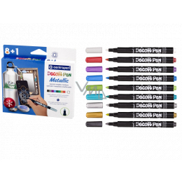 Sada 8 barevných speciálních metalických značkovaců a 1 bílý značkovač určený k dekorování různých materiálů (lakovaný papír, kov, sklo, plast, fólie, keramika, kraslice, kámen, ...)