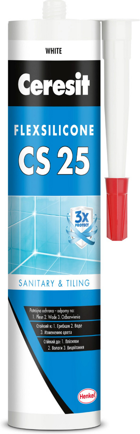 Unikalna receptura TrioProtect chroni silikon przed zainfekowaniem pleśnią, grzybami i innymi niepożądanymi mikroorganizmami. Materiał ma doskonałą przyczepność do suchych i niechłonnych podłoży, takich jak: szkło, ceramika, porcelana itp. Do wypełniania spoin i pęknięć w murze, tynkach, marmurze, betonie i zaprawach cementowych należy użyć innych uszczelniaczy z serii Ceresit. Silikon sanitarny Ceresit CS 25 jest odpowiedni do zastosowania w zbiornikach na wodę pitną.