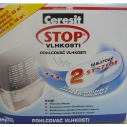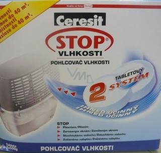 Aktivním prvkem domácího pomocníka Ceresit Stop vlhkosti je zdravotně nezávadná tableta pohlcující vzdušnou vlhkost. Skládá se z aktivních krystalů se silnými absorpčními schopnostmi zajišťujícími vysokou účinnost. Aktivní krystaly pohlcují nadbytečnou vlhkost vzduchu, která pak ve formě solného roztoku stéká do nádržky.