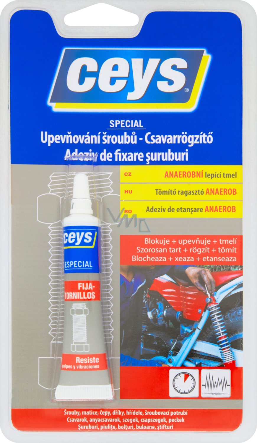 Klej wypełnia przestrzeń między śrubą a gwintem. Natychmiast po utwardzeniu przekształca się w sztywną i mocną substancję, która jest odporna na mrozy, wibracje, oleje i rozpuszczalniki. Nie przepuszcza wilgoci i brudu.