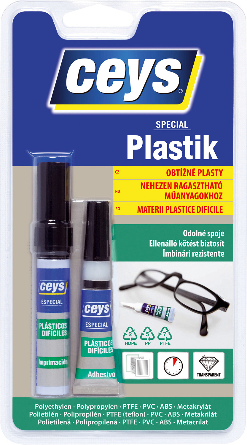 Adhesivo do trudnych plastików to klej sekundowy, który dzięki imprimacji, która jest częścią opakowania, jest odpowiedni do klejenia polipropylenu, polietylenu i teflonu. Nadaje się również do klejenia wszystkich rodzajów twardych i półtwardych plastików. Jest przezroczysty, bardzo mocny i z łatwą obsługą. Idealny do szybkich prac. Tubkę z klejem przechowuj w poziomej pozycji w suchym i chłodnym miejscu. Produkt ma ograniczoną trwałość, która znacznie się wydłuża dzięki przechowywaniu w lodówce (5 – 10 °C).