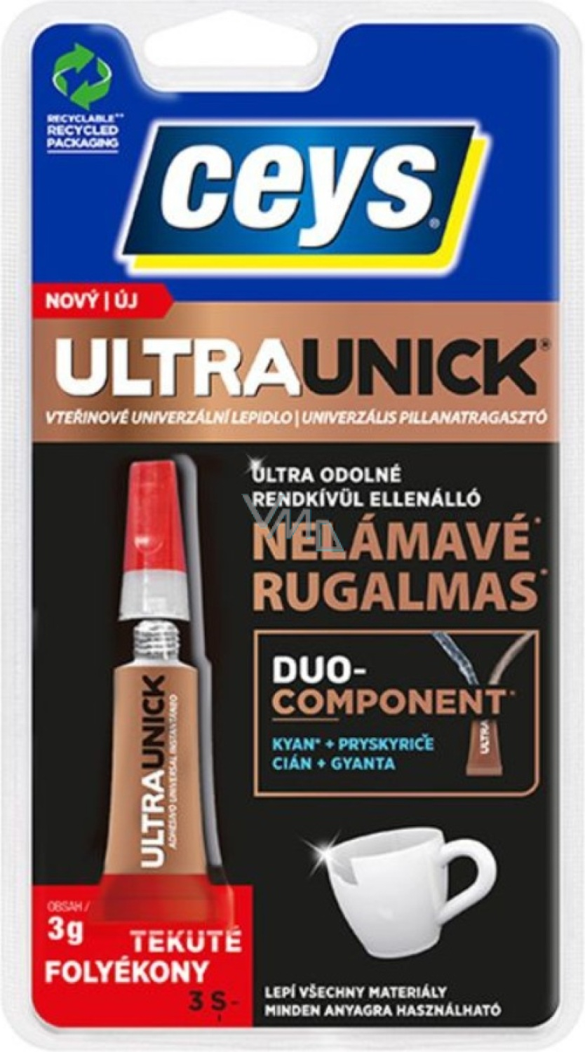 Ceys Ultraunick to szybko schnący uniwersalny klej cyjanoakrylowy przeznaczony do ekspresowych napraw i drobnych prac. Dzięki swojej płynnej konsystencji łatwo się rozprowadza, szybko twardnieje i tworzy mocne i przezroczyste połączenia na szerokiej gamie materiałów.