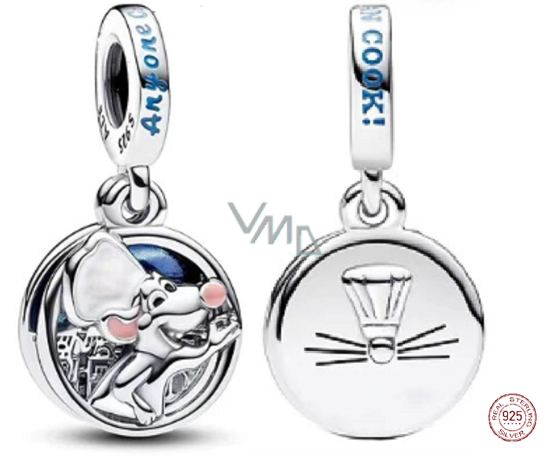 Zawieszka ze srebra 925 Disney Pixar Ratatouille szczur Remy 2w1, charms do bransoletki film