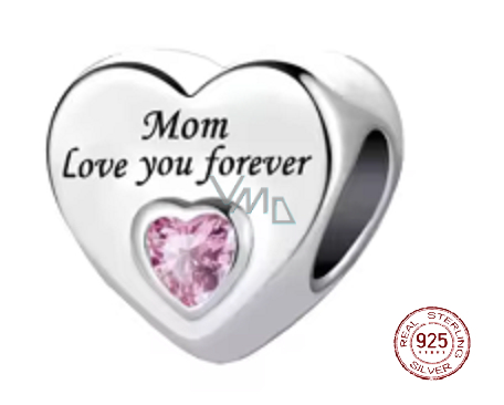 Charm Sterlingové stříbro 925 Máma tě vždy miluje srdce, korálek na náramek rodina