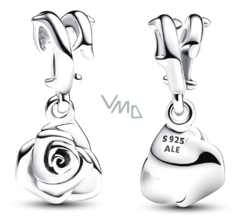 Charm Srebrna 925 Róża w kwiecie, wisiorek na bransoletkę przyroda