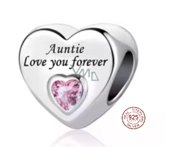 Powiedz swojej siostrzenicy tym koralikiem z sercem, że będziesz ją mieć w sercu na zawsze. Miłość jest najlepszą rzeczą, jaką możemy otrzymać od życia. Koralik wykonany jest ze srebra próby 925, ozdobiony różowym cyrkonią i grawerem: "Auntie love you forever" - Ciocia kocha na zawsze. Idealny prezent dla wszystkich ukochanych siostrzenic.