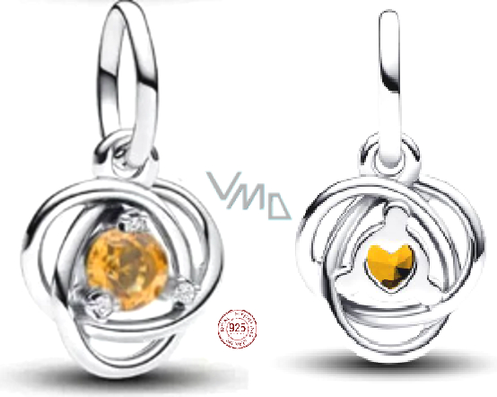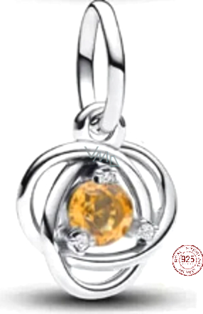 Charm Srebrny 925 Żółty krąg węczności listopad, wisiorek na bransoletkę symbol
