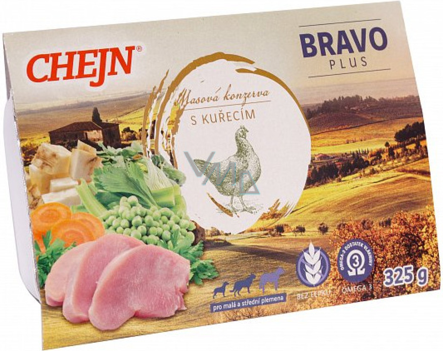 Chejn Bravo PLUS s kuřecím a zeleninou pro malé a střední psy, 325 g