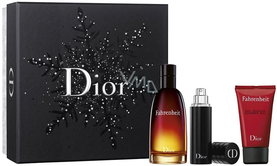 Christian Dior Fahrenheit toaletní voda pro muže 100 ml + cestovní sprej (znovu plnitelný) toaletní voda 10 ml + sprchový gel 50 ml, dárková sada