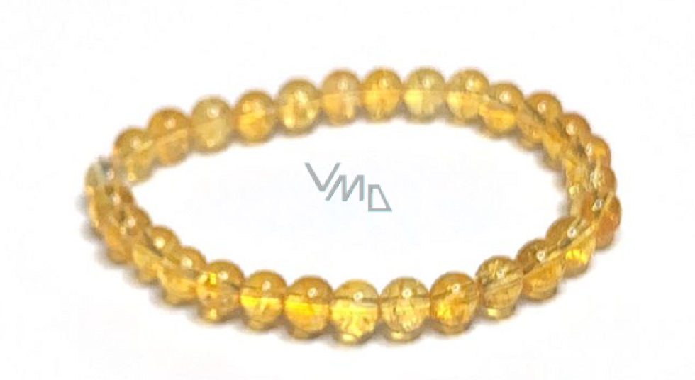 Citrín náramek elastický přírodní kámen, kulička 6 mm / 16 - 17 cm, kámen hojnosti, úspěchu