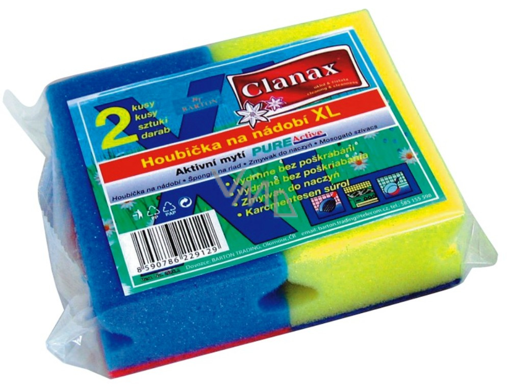 Ułatw sobie sprzątanie swojej kuchni lub mycie naczyń gąbkami marki Clanax. Gąbka zawiera miękką część, która zapewnia mycie zwykłych zanieczyszczeń i abrazynę, która zadba o usunięcie zaschniętego brudu oraz większych zanieczyszczeń. Gąbka Clanax zapewnia doskonałą czystość Twoim naczyniom bez użycia większego wysiłku. Dzięki swojemu rozmiarowi dobrze leży w dłoni, a mycie nią to czysta przyjemność.
