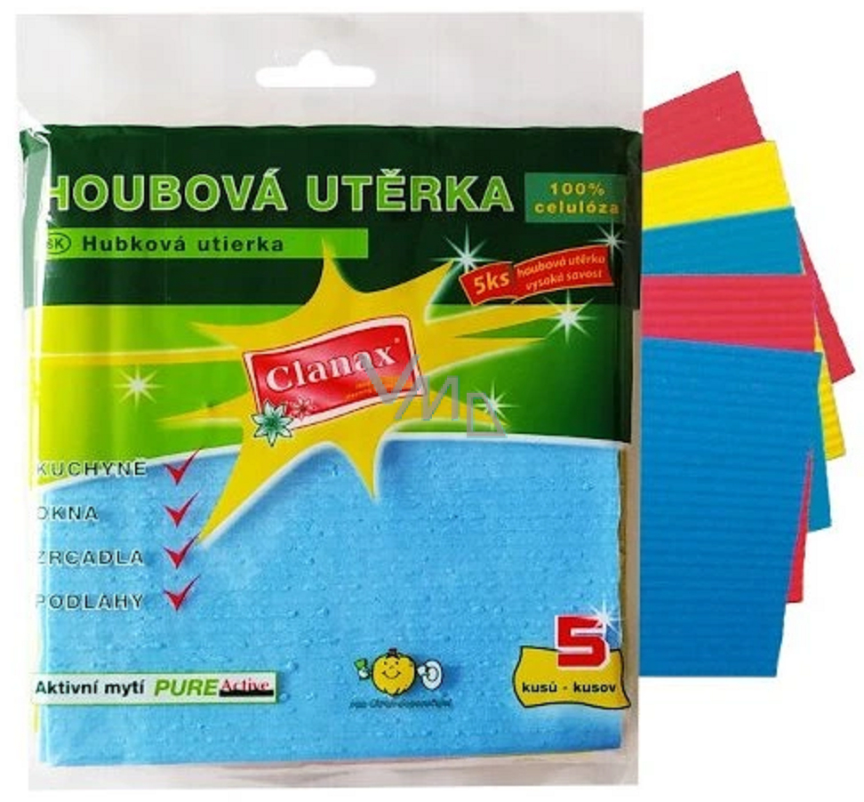 Hledáte-li praktického pomocníka v boji proti špíně a nečistotám, tak právě antibakteriální houbová utěrka Clanax je pro vás správnou volbou. Poradí si se špínou, prachem i menší potopou v podobě rozlité vody nebo kávy – pojme totiž až 160 ml tekutiny. Je vyjímečně savá. Houbová utěrka nepoškozuje povrchy, vhodná na každý povrch, kuchyně - okna, zrcadla, podlahy, šetrná. Jistě vás potěší i fakt, že je biologicky zcela odbouratelná a lze ji vyprat a použít opakovaně. Dopřejte čistotu a hygienu zcela bez plísní všem plochám a povrchům ve vaší domácnosti.