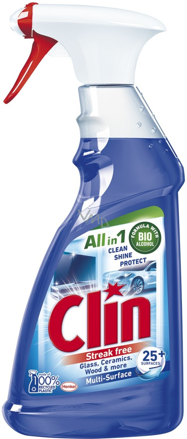 Bez względu na to, czy potrzebujesz wytrzeć tłuste odciski palców z okna samochodu lub szklanego stołu, usunąć plamy z jedzenia z lodówki, czy pozbyć się kurzu z mebli w salonie, wystarczy spryskać odpowiednią powierzchnię Clin Multi-Shine i delikatnie przetrzeć ściereczką. Rezultatem będzie lśniąca powierzchnia bez smug.