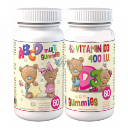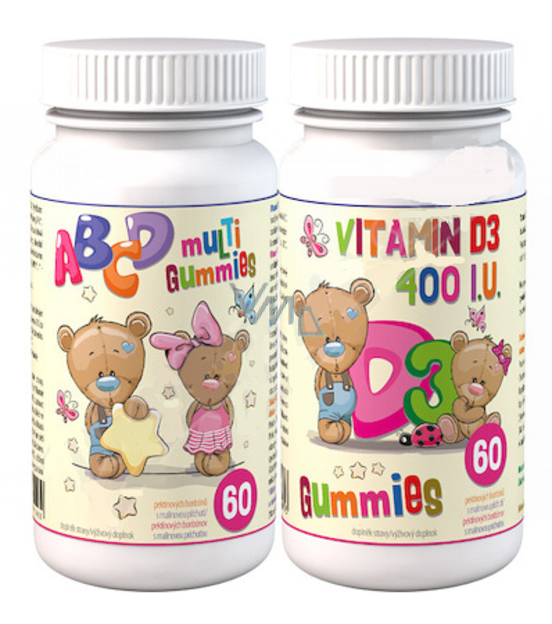 Clinical ABCD Multi Gummies + Vitamin D3 Gummies pektinové bonbóny s malinovou příchutí 2 x 60 kusů