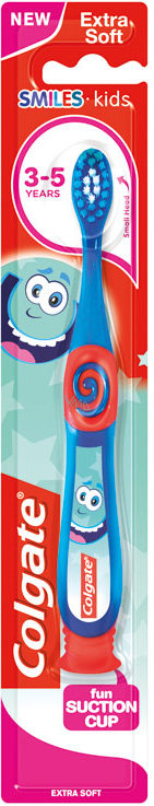 Kartáček je v různých barvách. Extra měkký zubní kartáček 3-5 let. Navrženo pro děti od 3 let, které mají mléčné zuby a kterým se vyvíjí stoličky. Přísavka pro jednoduché a zábavné upevnění.
