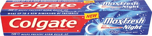 Zubní pasta Max Fresh Night s unikátními ochránci dechu, která pomáhá bránit tvorbě bakterií zatím co vy spíte. Fluoridová zubní pasta, nevhodná pro děti do 6 let.