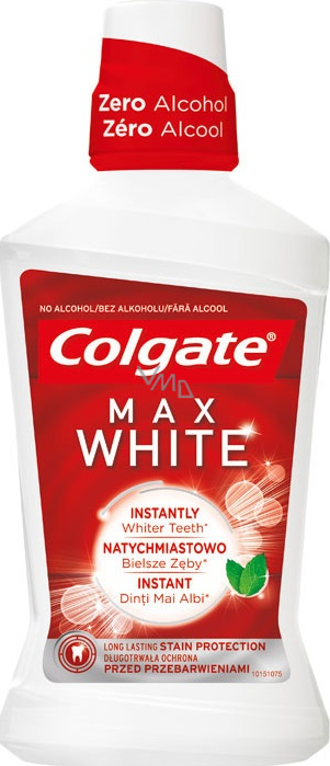 Klinicky ověřené složení ústní vody Colgate Max White One obsahuje jedinečné optické rozjasňovače, které se aktivují pohybem a odrážejí světlo, takže zanechají vaše zuby ihned bělejší.