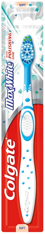 Colgate Max White s leštící pryžovou hvězdou a speciálním uspořádáním svazků štětinek ve středu hlavy kartáčku a moderním ergonomickým designem je skvělým pomocníkem při leštění zubní skloviny.