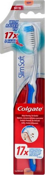 Nový Colgate Slim Soft má jedinečnou technologii - ještě tenčí hrot vlákna pro hluboké a jemné čištění. Měkké Slim Colgate s úzkým zakončením vláken snadno čistí podél linie dásní a mezi zuby, takže získáte jedinečný pocit důkladného čištění.