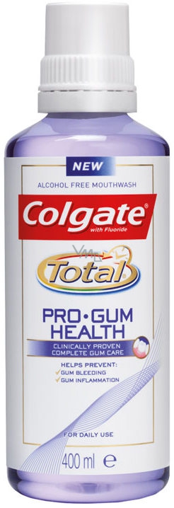 Ústní voda Colgate Total Pro Gum Health pro každodenní použití je vytvořena tak, aby poskytla kompletní nonstop (při použití dvakrát denně) péči o dásně pro zdravé zuby a dásně.