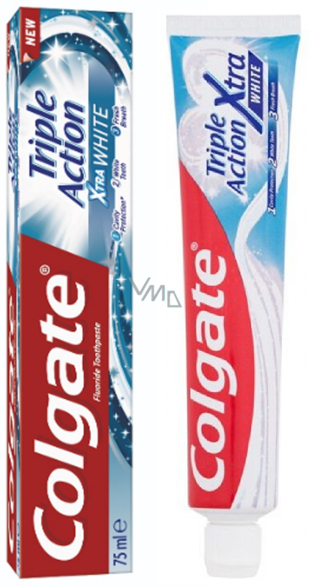 Pasta do zębów Colgate Triple Action Xtra White oferuje kompleksową pielęgnację dla Twojej jamy ustnej. Dzięki specjalnym czyszczącym mikroskopijnym cząstkom skutecznie usuwa plamy i pozostawia zęby widocznie bielsze już po kilku użyciach. Zapewnia potrójną ochronę – przed próchnicą, odświeżonym oddechem i bielszym uśmiechem.