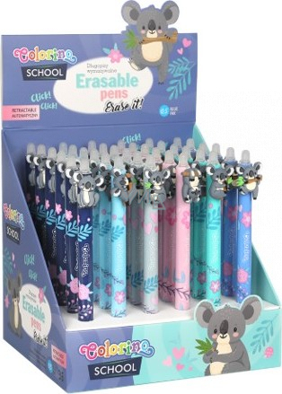 Praktyczne gumowalne pióra dla dzieci z motywami uroczych koali. Wysokiej jakości tusz można w razie potrzeby łatwo wymazać i przepisać.