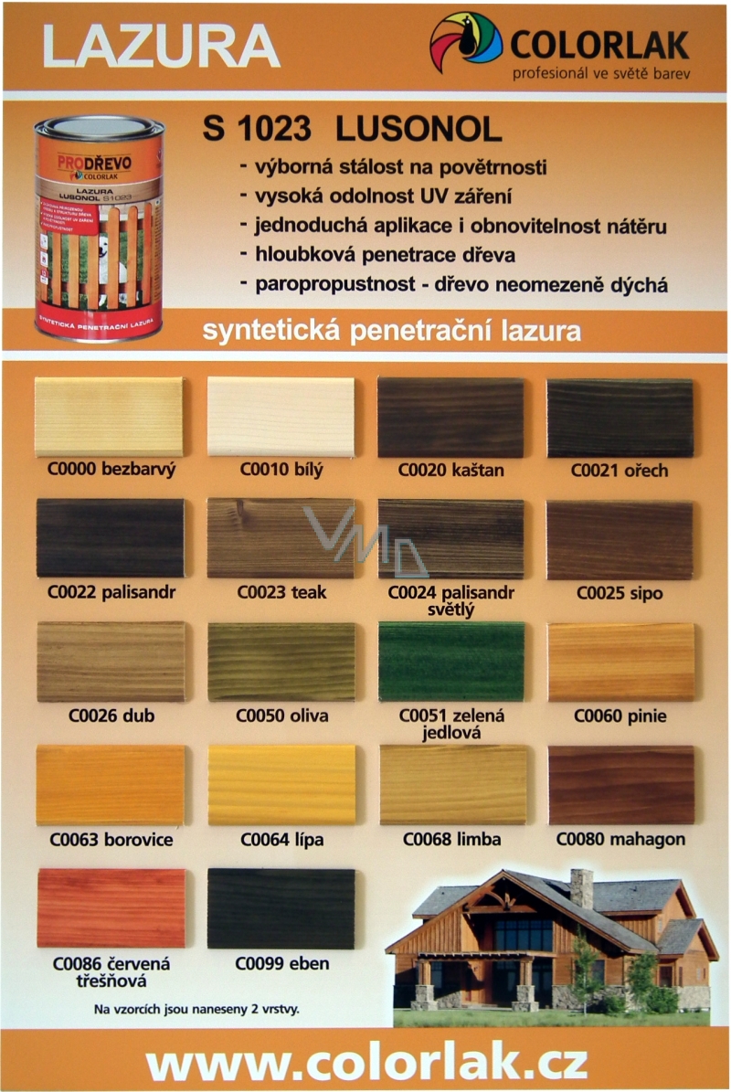Lusonol S 1023 penetrační lazurovací lak, je určena pro penetrační nátěry dřeva vystaveného vlivům povětrnosti i k povrchové úpravě dřeva v interiéru;