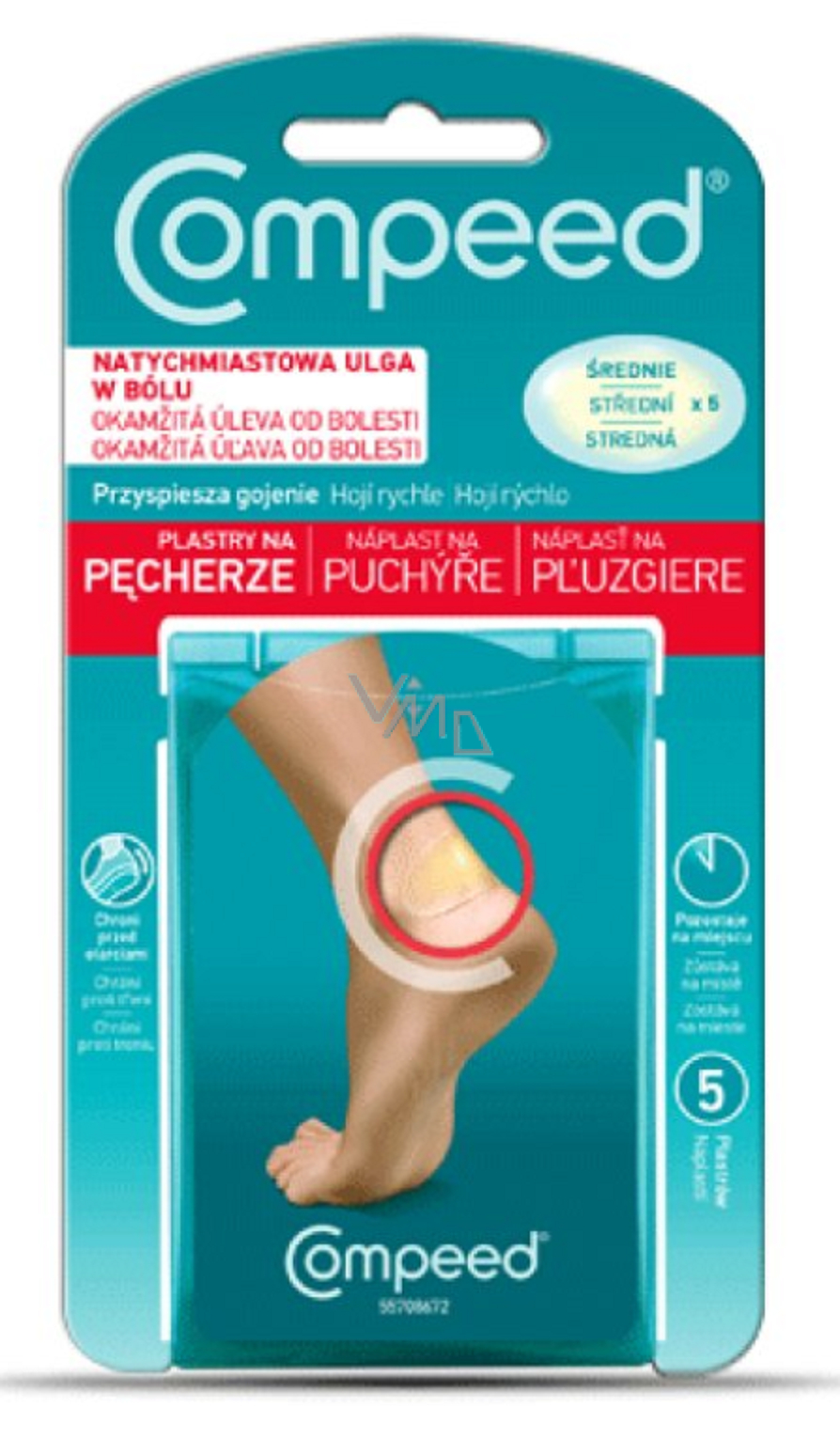 je vhodná na větší puchýře na patách a chodidlech okamžitě ulevuje od bolesti a tlaku je voděodolná je diskrétní a pohodlná.