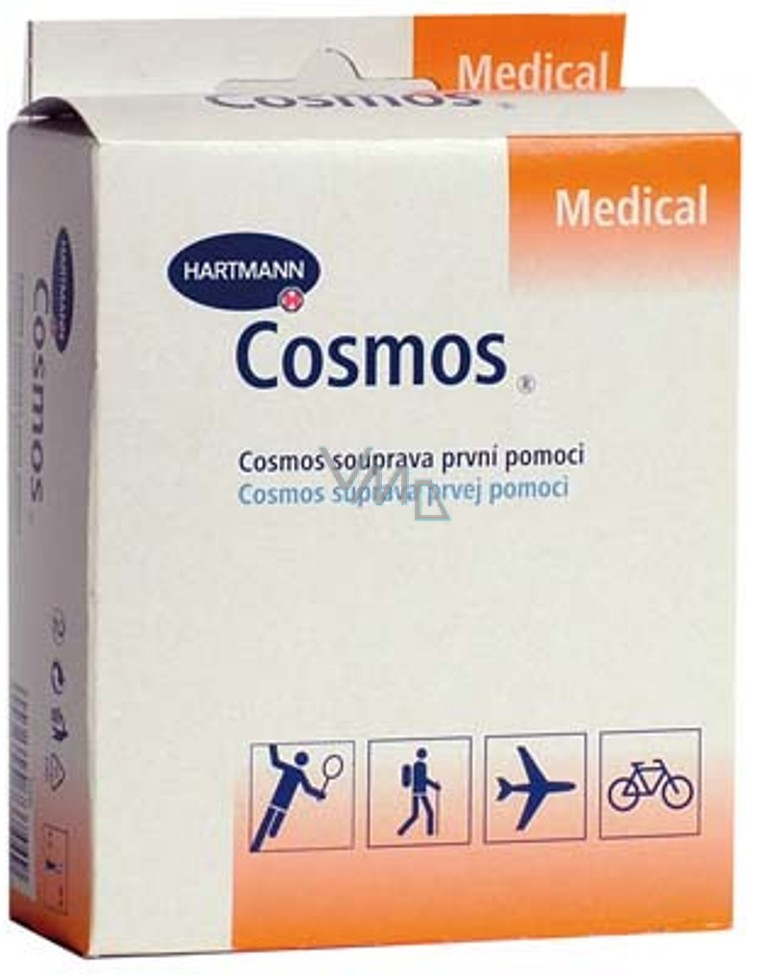 Cosmos souprava první pomoci je určená pro hygienické a bezpečné ošetření drobných poranění. Praktický výrobek vhodný na dovolenou, sport nebo pro děti na letní tábor.