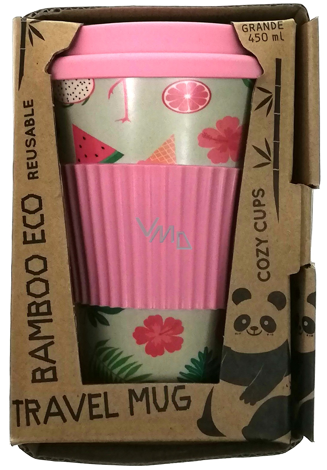 Cozy Time Bamboo Eco Flamingos bambusový ekologický termohrnek + silikonové víčko růžový 450 ml