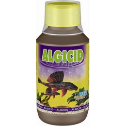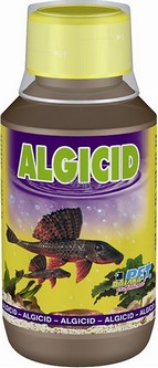 Přípravek proti přemnoženým řasám. Je přípravek k potlačování a hubení přemnožených řas v akváriu. Pokud se ve vašem akváriu objevilo nadměrné množství řas, nádrž je příliš osvětlena,nebo voda obsahuje nadměrné množství odpadních látek. Takové akvárium je potřeba ošetřit ALGICIDEM a tím tvorbu řas zastavit a opakovanou aplikací řasy zcela vyhubit.