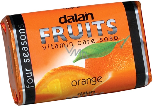 Ovocné exktrakty a vitamíny mýdla Dalan Fruits vás příjemně osvěží a zanechá příjemnou ovocnou vůni. Dalan Fruits pomeranč toaletní mýdlo. Pro všechny typy pleti. Příjemná a svěží vůně Vám dodá pocit čistoty a svěžesti.