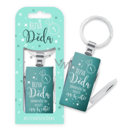 Kapesní nóż – breloczek jest designersko dopasowany do pozostałych prezentów z kolekcji „Bezva dziadek - jednoznacznie ten najlepszy na świecie”. Możecie w ten sposób stworzyć zestaw prezentów, które wasz ukochany dziadek doceni. Są bowiem praktyczne i urocze jednocześnie.