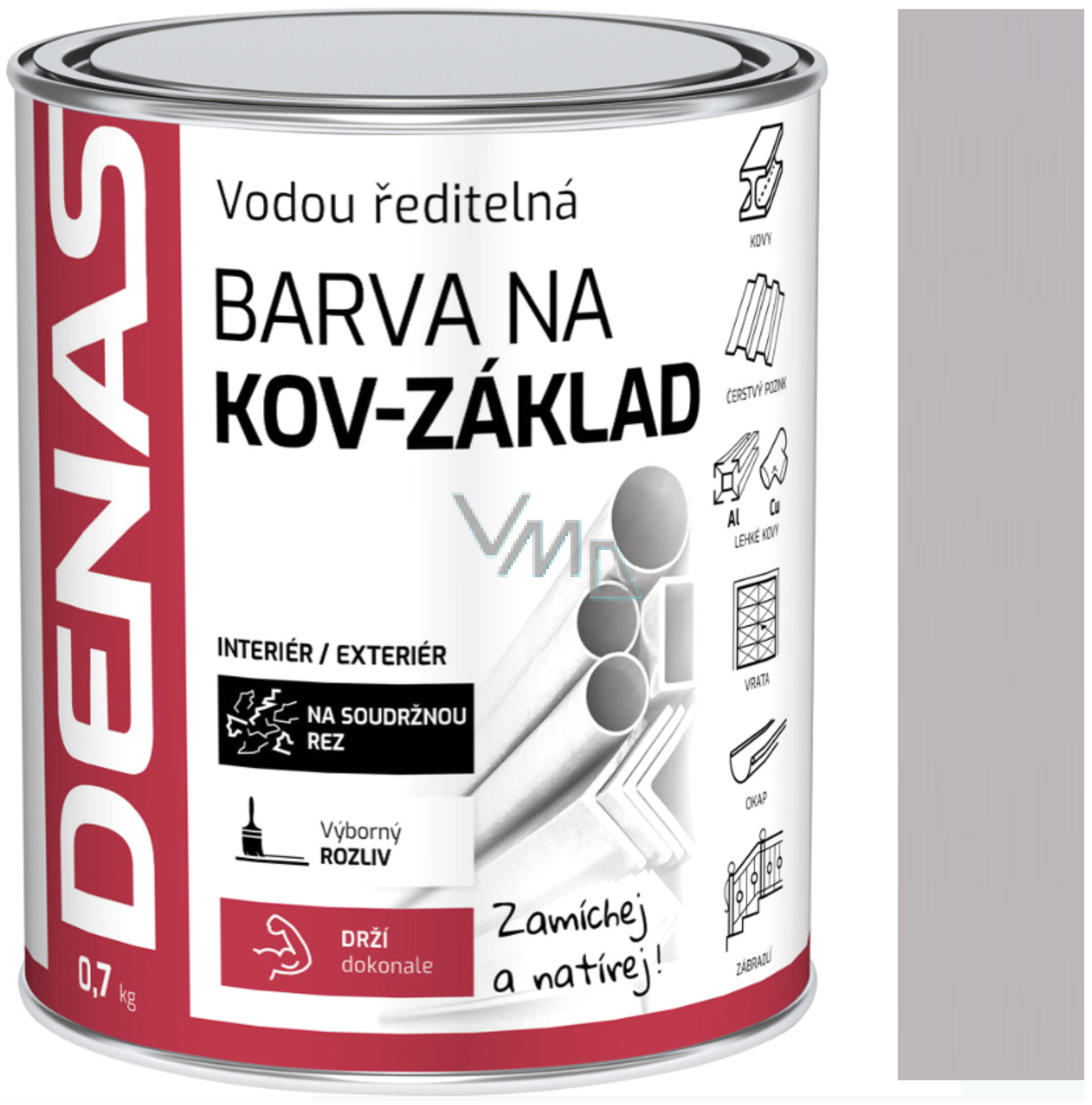 Denas na kov je základní antikorozní ochrana Železa, hliníku, mědi, pozinku. Barva je vodou ředitelná pro nové i renovační nátěry se zvýšenou korozní ochranou. Je vhodná k nátěrům ocelových, železných, hliníkových i čerstvě pozinkovaných konstrukcí a plechů, plechových střech, jejich klempířských prvků, zábradlí, plotů, sloupů a dalších kovových výrobků umístěných v exteriéru i interiéru. Je vhodná také na čerstvou měď. Vykazuje velmi rychlé zasychání, výbornou přilnavost na kovových podkladech, kryvost i zpracovatelnost.