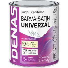 DENAS UNIVERZÁL SATIN je polomatná vrchní vodou ředitelná barva na nátěry stavební prvků a konstrukcí ze dřeva, kovu, staviv, čerstvého pozinkovaného plechu i pozinkovaných střešních šablon, hliníku, některých druhů plastů, umakartu, keramických obkladů s přídavkem silanu, sádrokartonu. Splňuje normu povrchových úprav výrobků a hraček pro děti od 0-3 let (ČSN EN 71, část 3) a je vhodný pro styk s potravinami. Nátěry mají vynikající odolnost, nekřídují, ani nekřehnou vlivem působení UV záření a povětrnosti, jsou odolné působení čisticích přípravků užívaným v domácnosti. Natřené povrchy jsou extrémně mechanicky odolné a vykazují dlouhou životnost v interiéru i exteriéru.