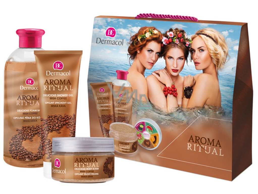 Dermacol Aroma Ritual Irská káva Opojný sprchový gel 250 ml + tělový peeling 200 ml + pěna do koupele 500 ml, kosmetická sada