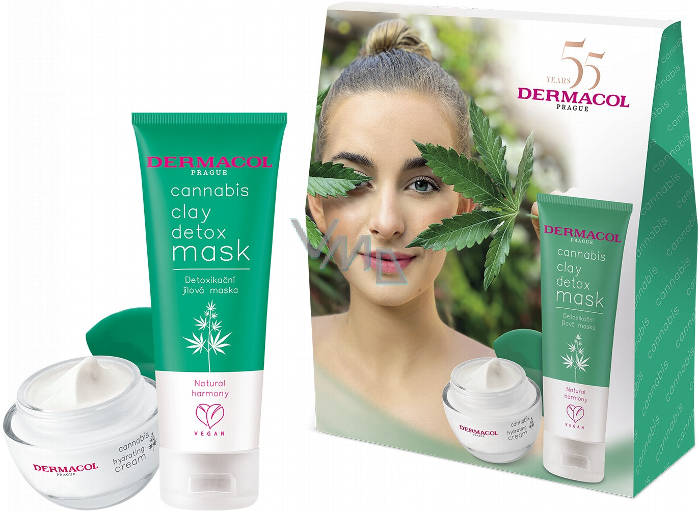 Dermacol Cannabis detoxikační jílová maska 100 ml + pleťový krém 50 ml, kosmetická sada