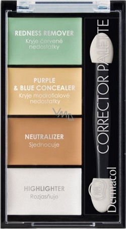 Opis Dermacol Corrector Palette 4-barevná paleta korektorů a rozjasňovače 9 g