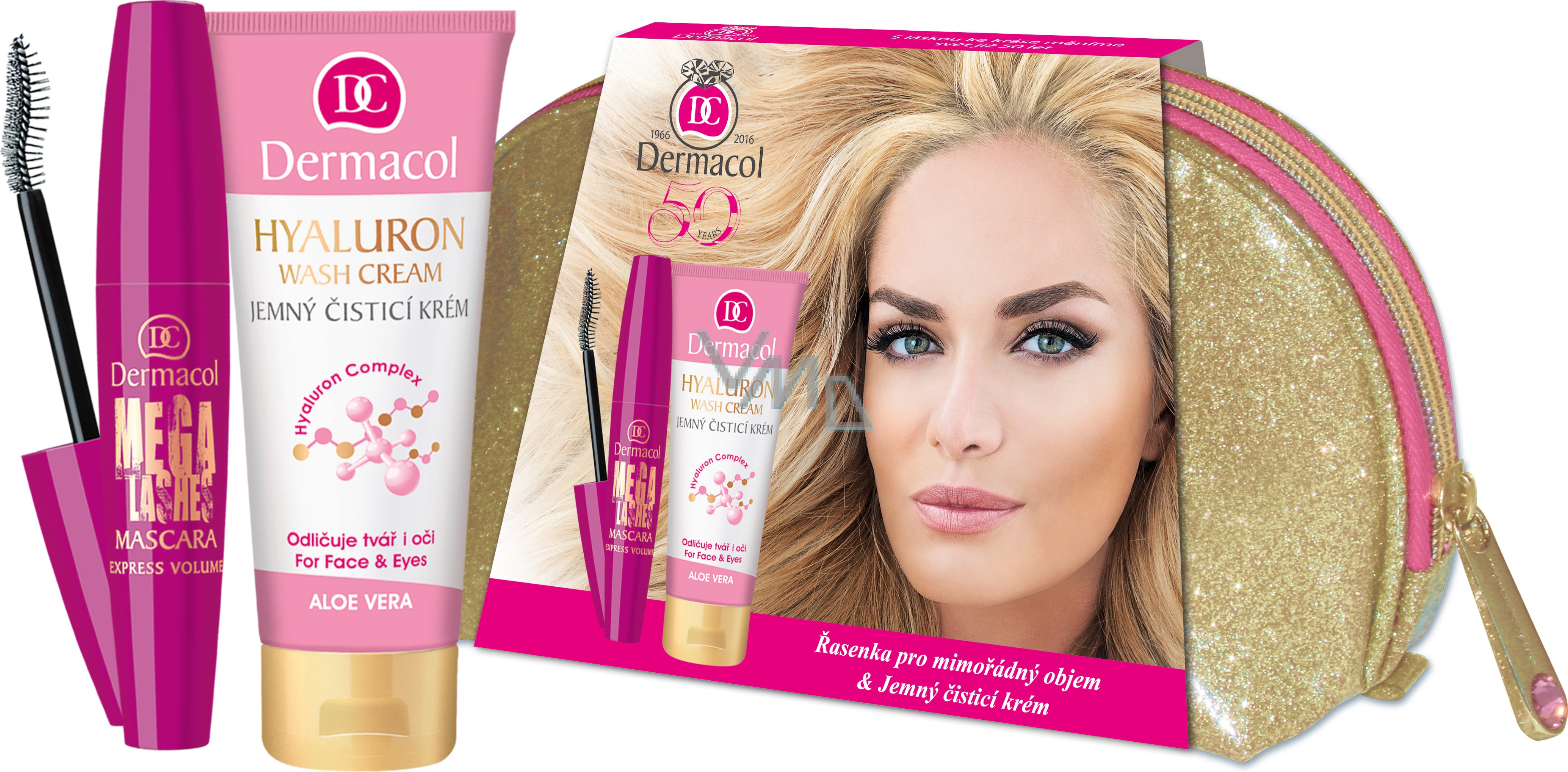 Dermacol Mega Lashes Express Volume řasenka černá 12,5 ml + Hyaluron Wash Cream jemný čisticí krém 100 ml + etue, kosmetická sada