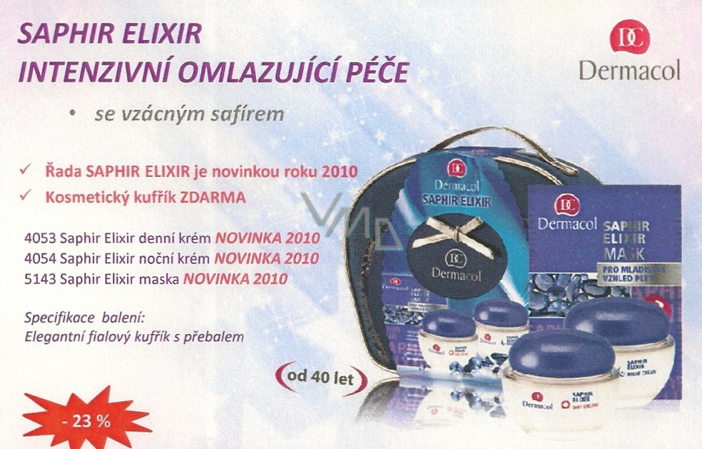 - kosmetický kufřík ZDARMA- Saphir Elixir denní krém - novinka 2010- Saphir Elixir noční krém - novinka 2010- Saphir Elixir maska - novinka 2010